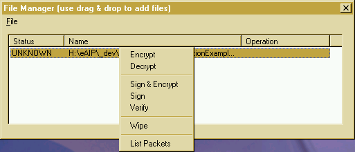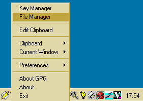 Open the WinPT File Manager window by right-clicking the WinPT tray icon (bottom right of the screen) and selecting File Manager.