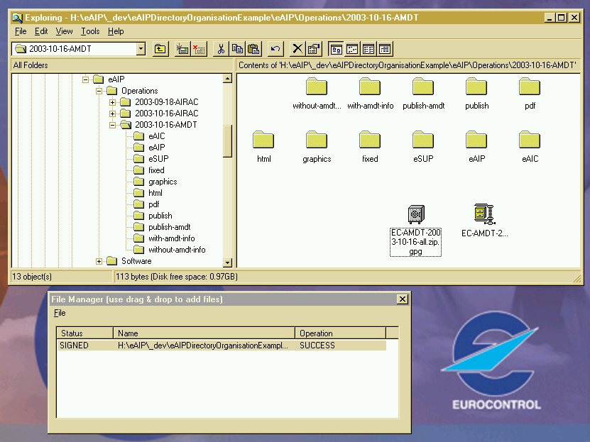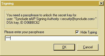 This chapter describes the procedure to sign an eAIP package using PGP. See also the eAIP Security Risks and Mitigation Strategies in the eAIP Specification.