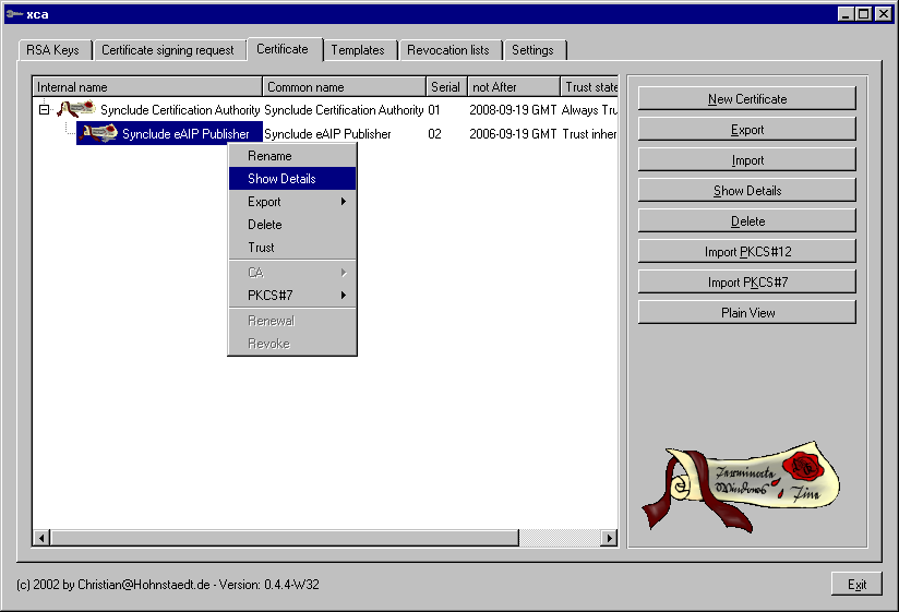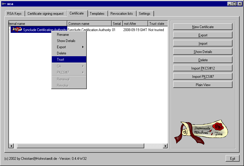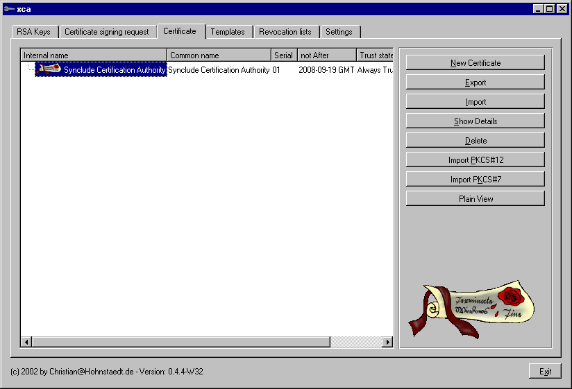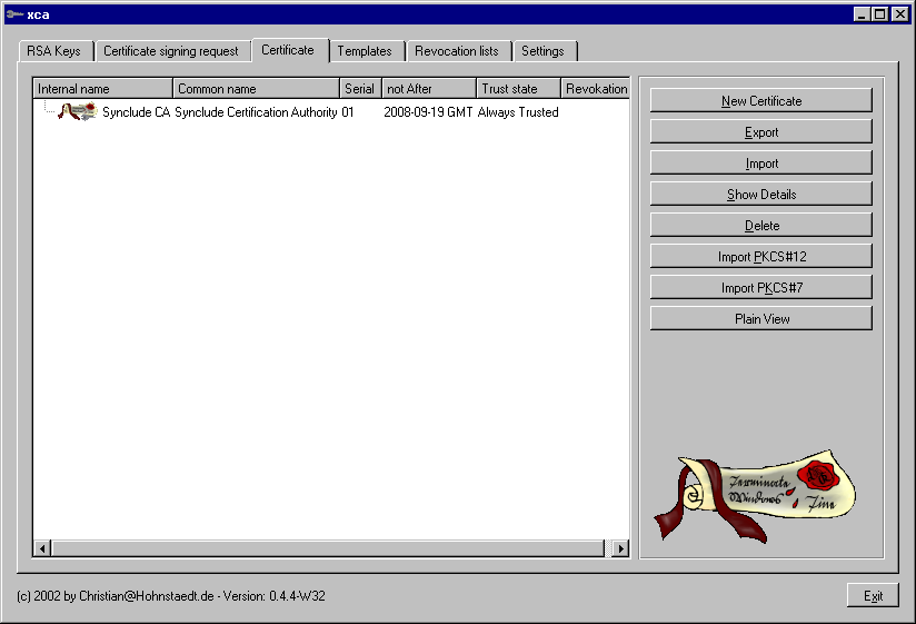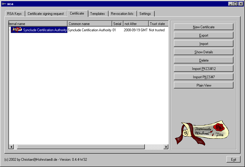 XCA: graphical interface to OpenSSL for management of x509 certificates. This tutorial covers version 0.4.4.