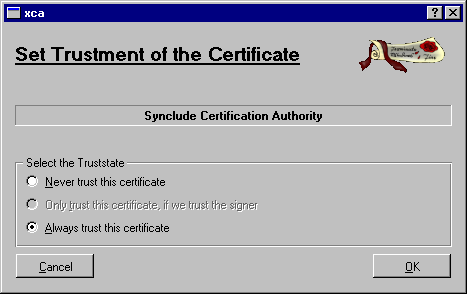 The trust setting dialogue appears. Select Always trust this certificate. Click OK.