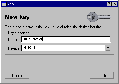 Enter the key name you wish, and choose the key strength you need (at least 2048 recommended). Click Create to start the key generation.