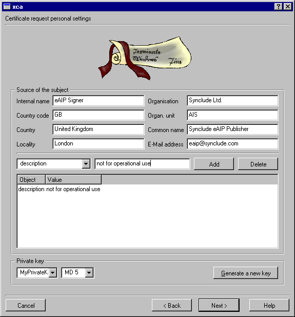 Creating a Certificate Signing Request is done by the actual person doing the signing of the eAIP packages. The steps are: