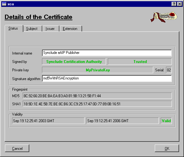 The person or entity signing the eAIP package has a certificate and is able to sign eAIP packages, as described in How to sign an eAIP with x509