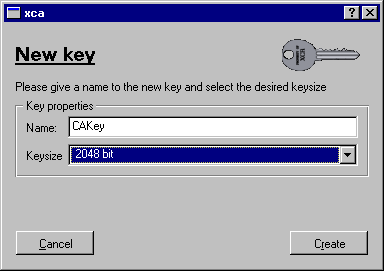 Enter the CA key name you wish, and choose the key strength you need (at least 2048 is recommended). Click Create to start the key generation.