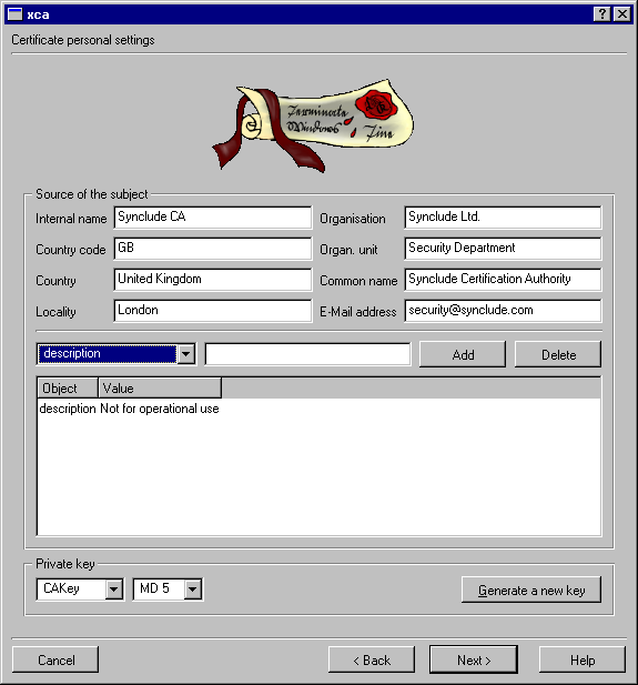 Internal name: A name by which you will recognise this certificate in the XCA software.