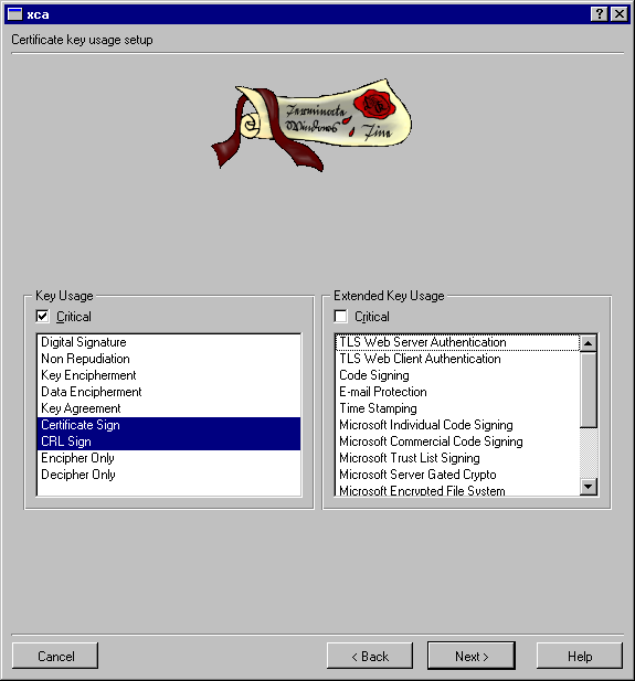 Certificate Sign: Enable this certificate to sign other certificates (primary purpose of a CA certificate).