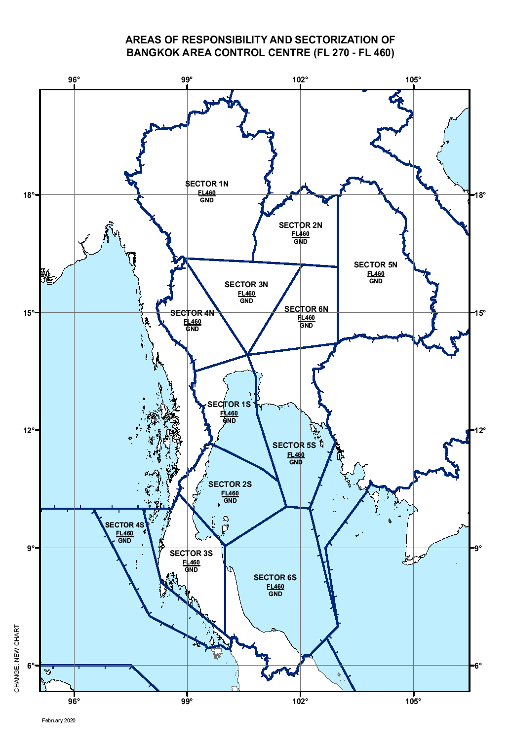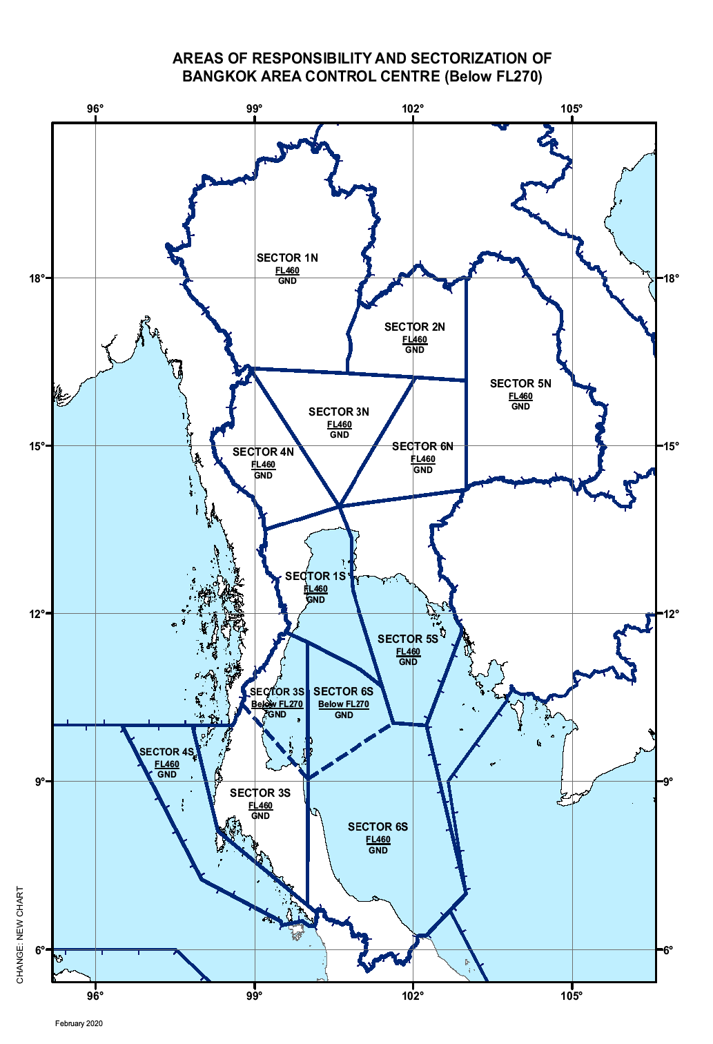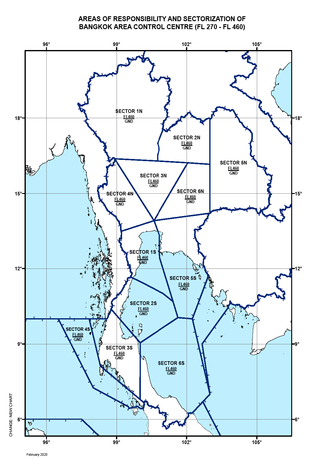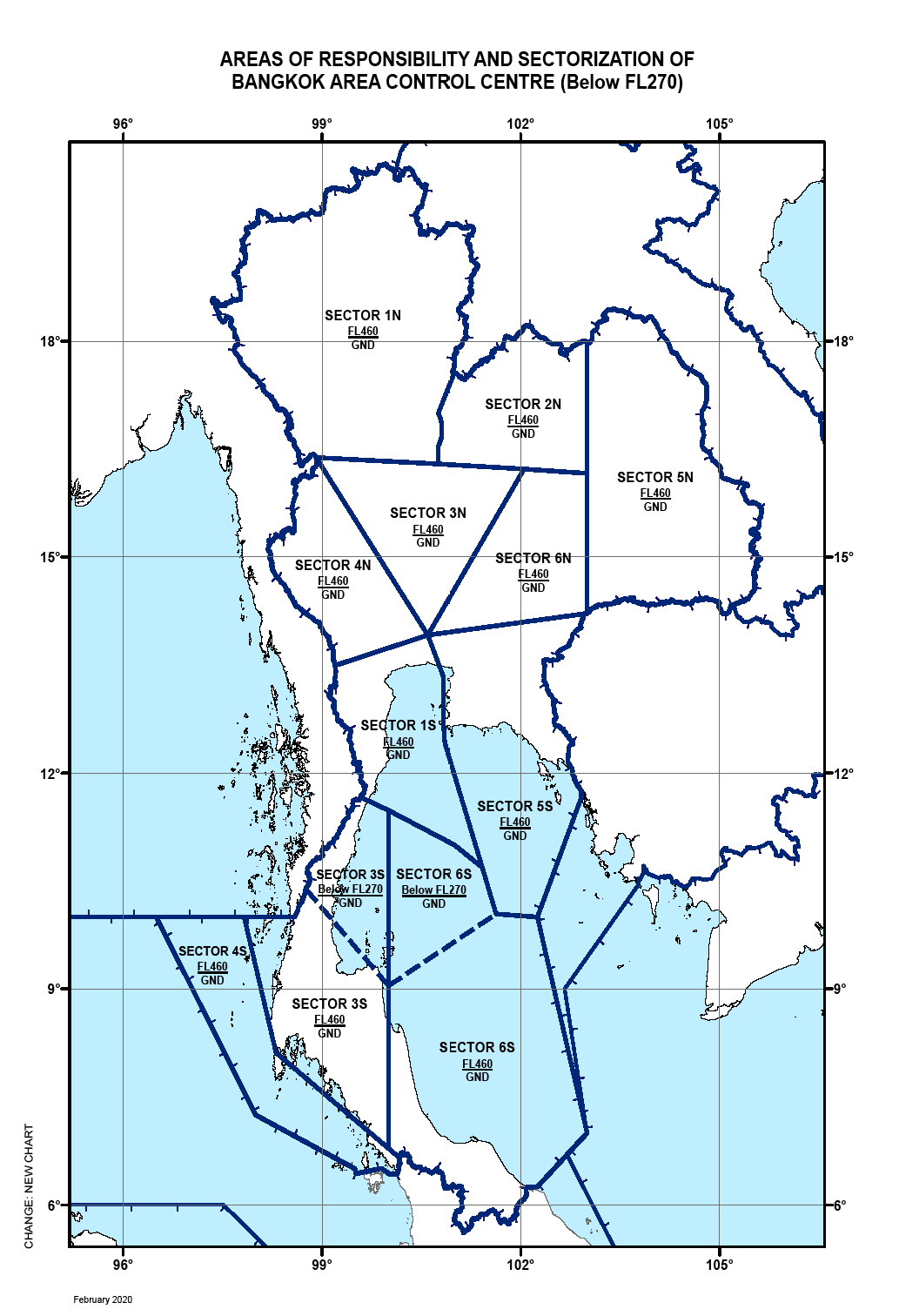Bangkok Area Control Centre is divided into 12 sectors as follows: