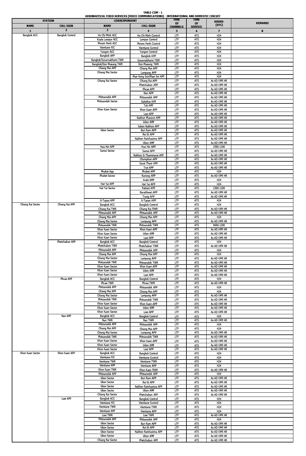 Aeronautical Radio of Thailand Ltd. is responsible for the aeronautical telecommunication services and navigation services operated within Bangkok FIR.