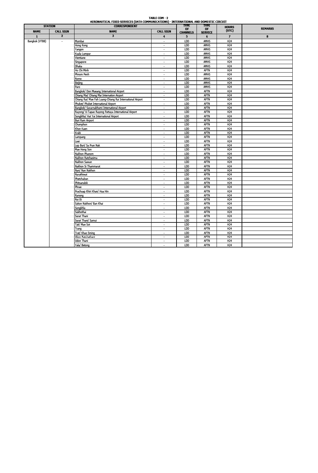 The detail of information on Aeronautical Fixed Services (Data Communications) are given in GEN 3.4, TABLE COM-2