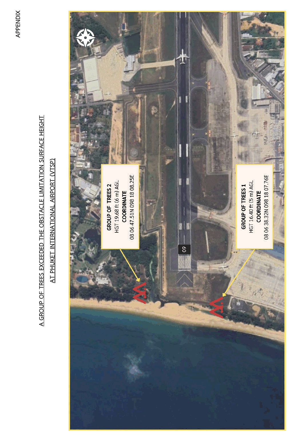 | 2 | Trees; Approach Surface | 08 06 47.51N 098 18 08.25E | 97 m BFR THR RWY 09, 147 m LEFT SIDE OF EXTD RCL | 19.68 ft (6 m) |