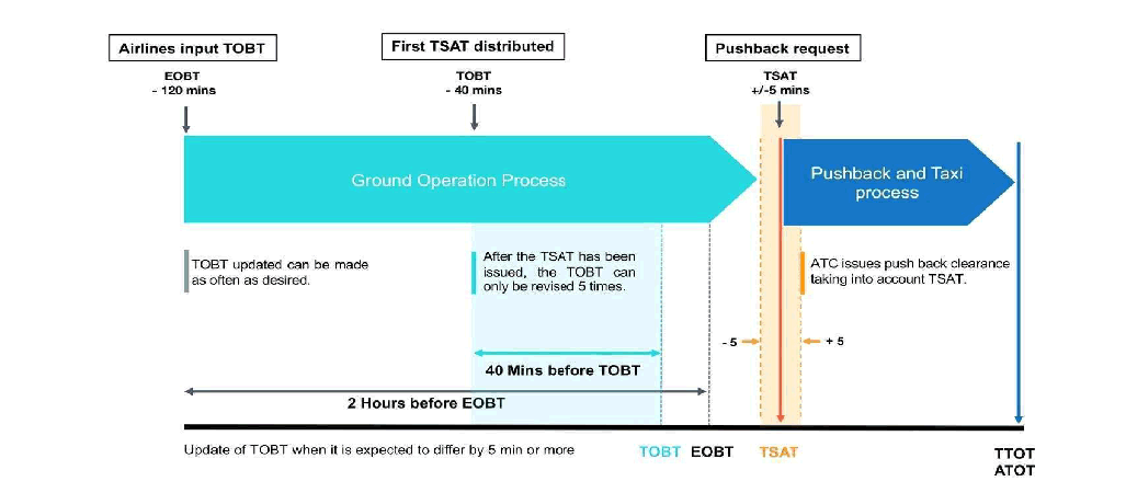 Ground Control will issue start-up and push back clearance by taking the TSAT into account.